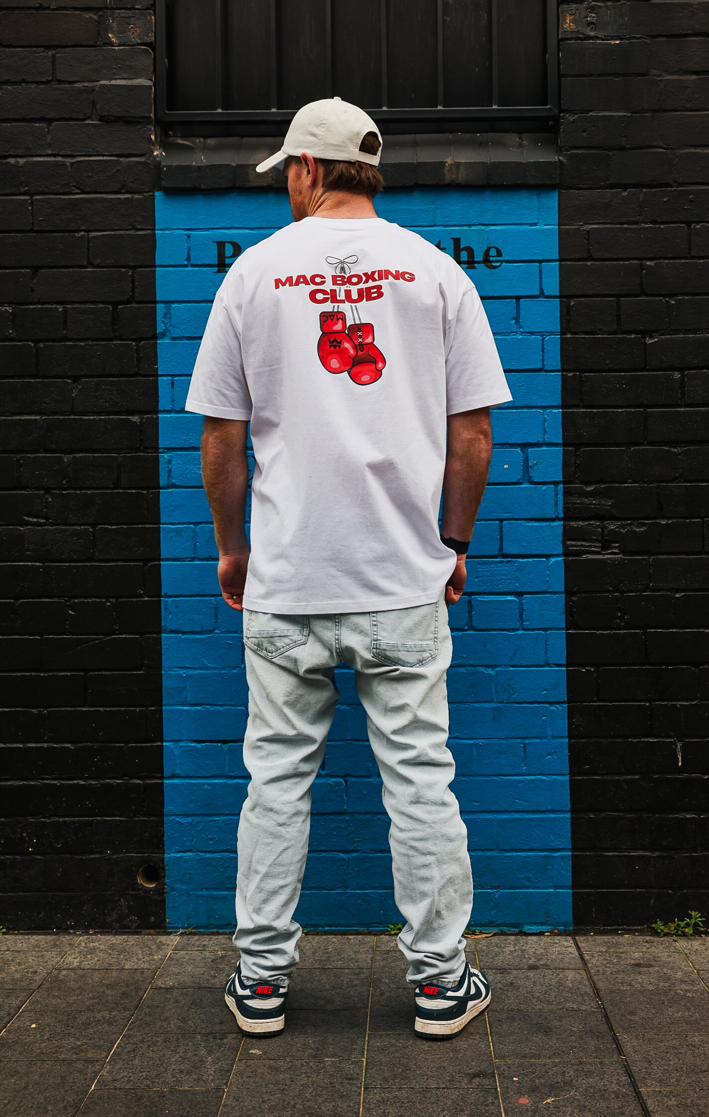 Step up your streetwear game with the Mac T-shirt in classic white with red highlights. Designed for comfort and statement style, this tee features an oversized fit for that relaxed, on-trend look.